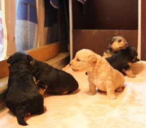 All puppies looking out